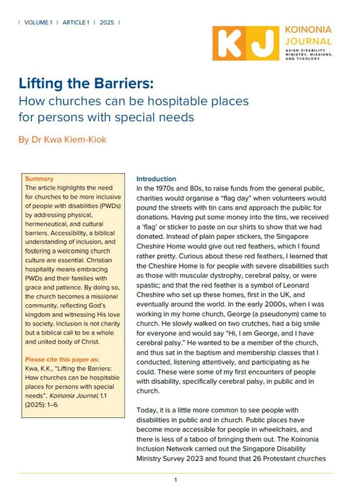 Towards an Asian Disability Missiology: Reflections from Singapore.
